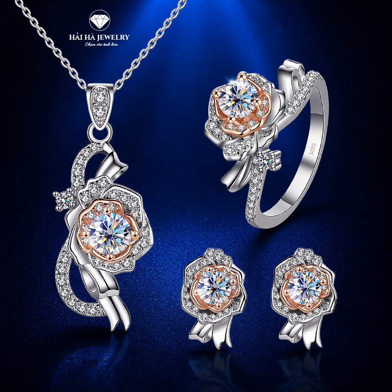 Bộ trang sức hoa hồng moissanite – Một vẻ đẹp dịu dàng ở lại rất lâu | Hải Hà Jewelry KHUYẾN MÃI - ƯU ĐÃI ĐẶC BIỆT