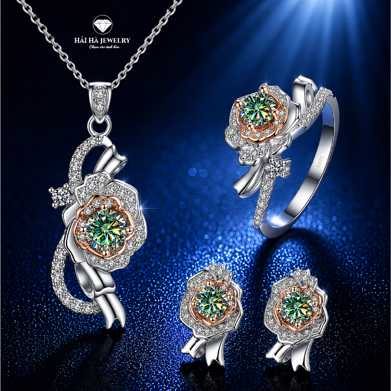 Bộ trang sức Hoa Hồng moissanite màu xanh lá – Một cảm giác tươi mới ở lại rất lâu | Hải Hà Jewelry