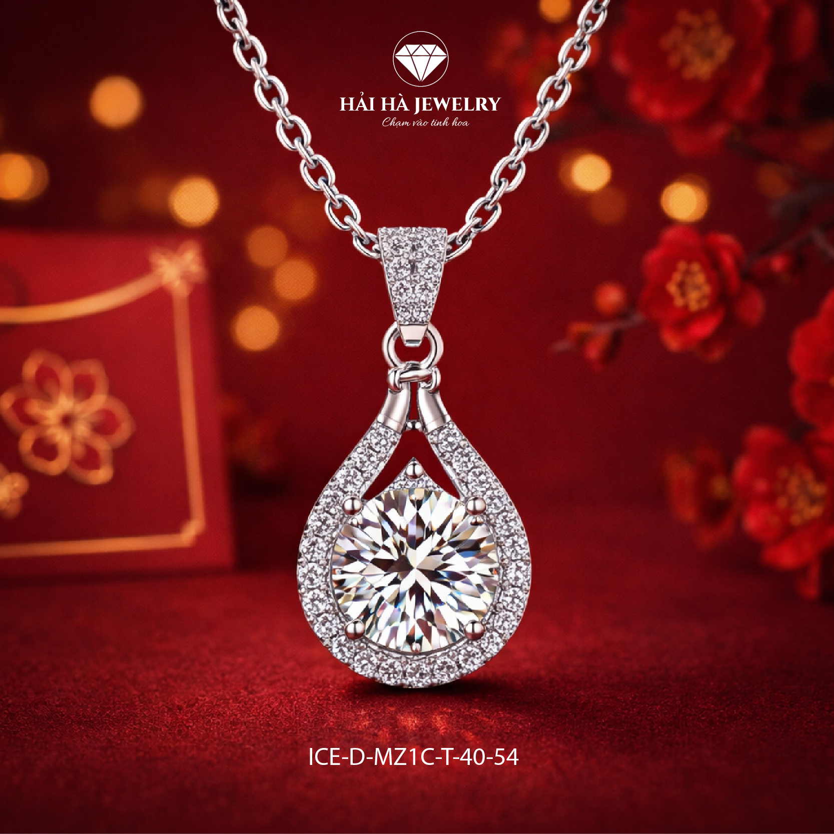 Dây chuyền bạc 925 đính moissanite 1 carat dáng giọt nước tinh tế | Hải Hà Jewelry KHUYẾN MÃI - ƯU ĐÃI ĐẶC BIỆT