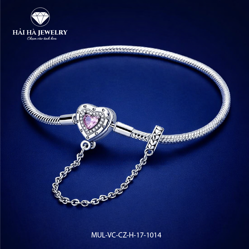 Vòng tay bạc 925 charm trái tim đá hồng – Một cảm xúc được giữ lại