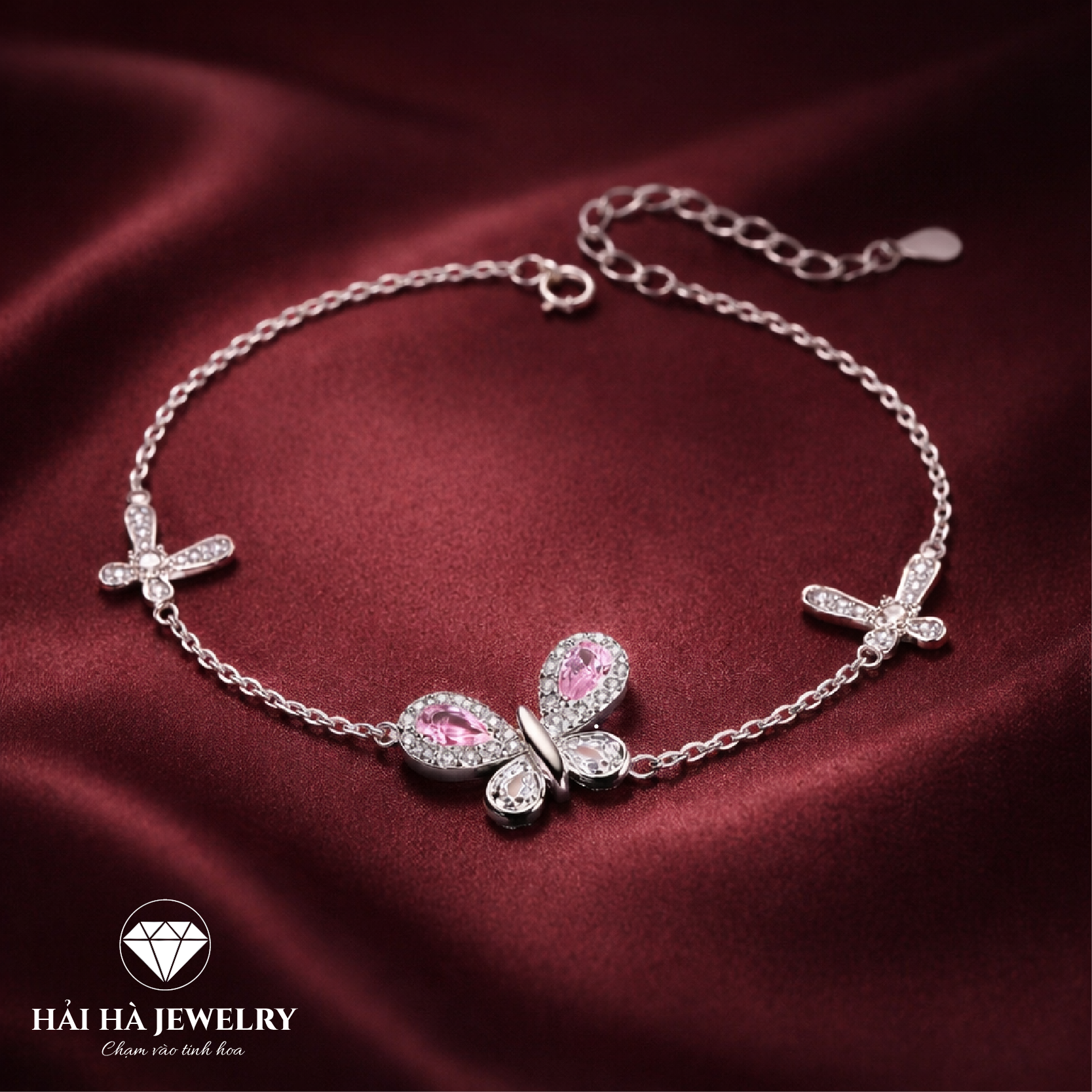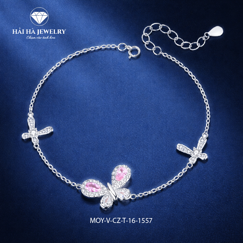 Vòng bạc bướm hồng điểm xuyết – Dịu dàng giữ lấy những rung động đầu tiên | Hải Hà Jewelry